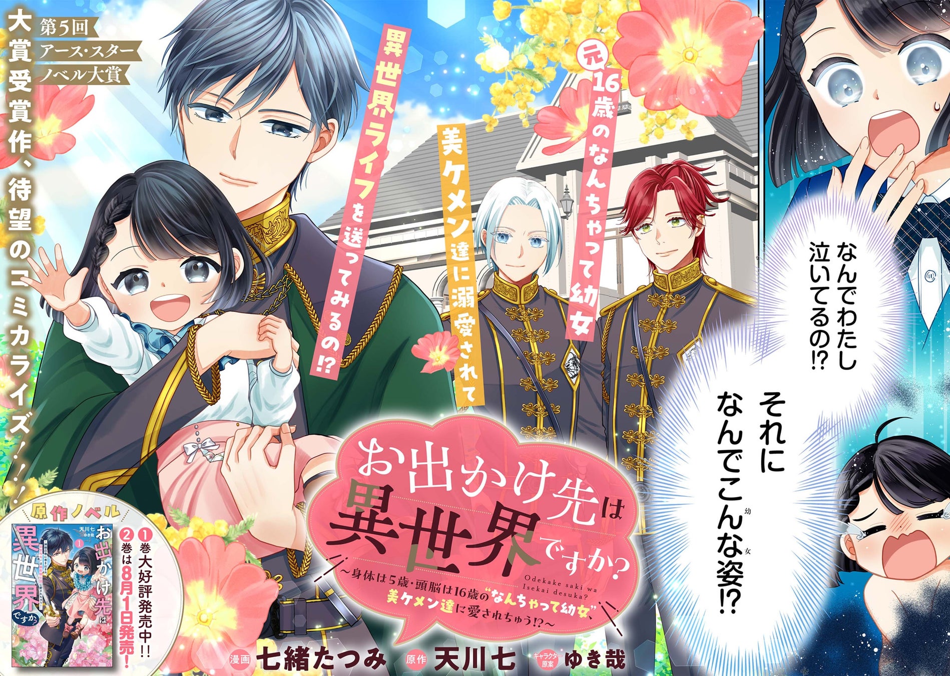 『お出かけ先は異世界ですか?~身体は5歳・頭脳は16歳の“なんちゃって幼女”、美ケメン達に愛されちゅう!?~』(漫画:七緒たつみ 原作:天川七 キャラクター原案:ゆき哉)の連載が、コミック アース・スター(https://comic-earthstar.com/) にて、本日7月25日(木)18時より開始となりました。