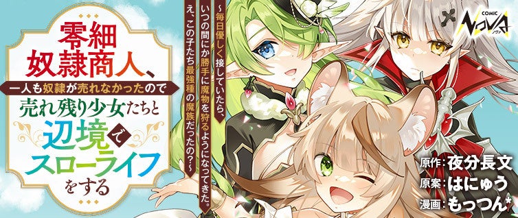 しかし奴隷のことを大切にしすぎるせいで同業者からはバカにされ、客からも相手にされず、商品である獣人のミーア、吸血鬼のイヴ、エルフのレイレイの三人から慰められる日々を過ごしていた。いよいよ借金で首が回らなくなってしまったスレイは三人と共に辺境へ逃げ出すが、その道中で魔物の群れに襲われてしまう。