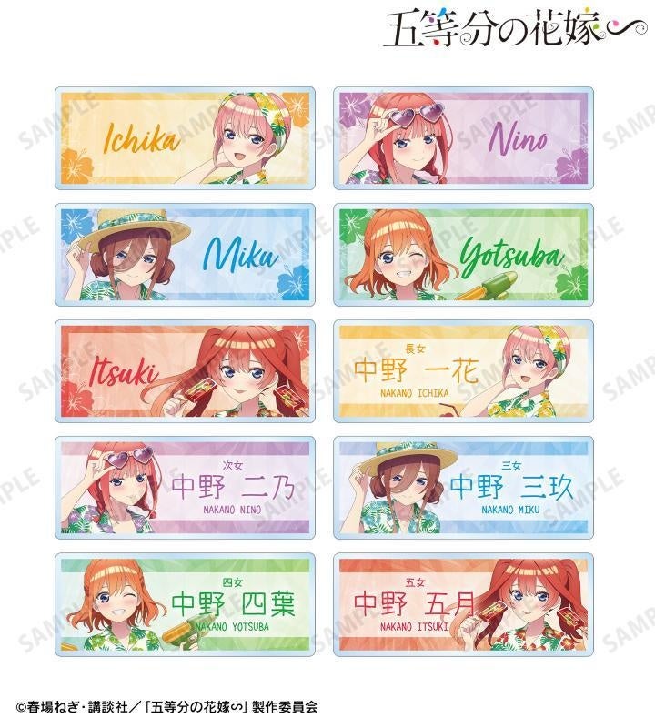 中野一花、中野二乃、中野三玖、中野四葉、中野五月の描き下ろしイラストをアクリルネームプレートに仕上げました。