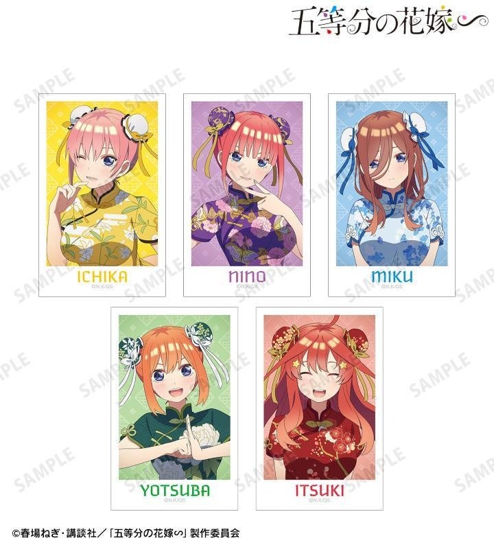 中野一花、中野二乃、中野三玖、中野四葉、中野五月の描き下ろしイラストをインスタントフィルム風のデザインに仕上げました。