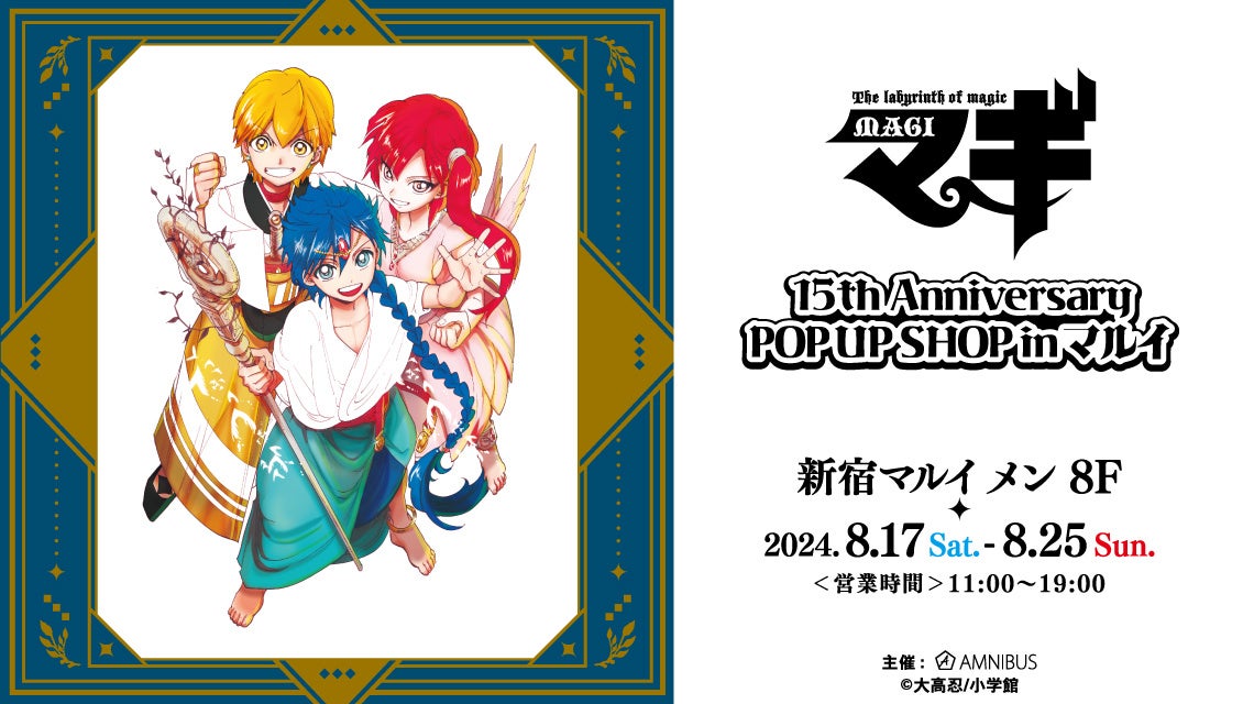 2024年8月17日(土)より新宿マルイ メンにて「『マギ』15th Anniversary POP UP SHOP in マルイ」の開催が決定いたしました。