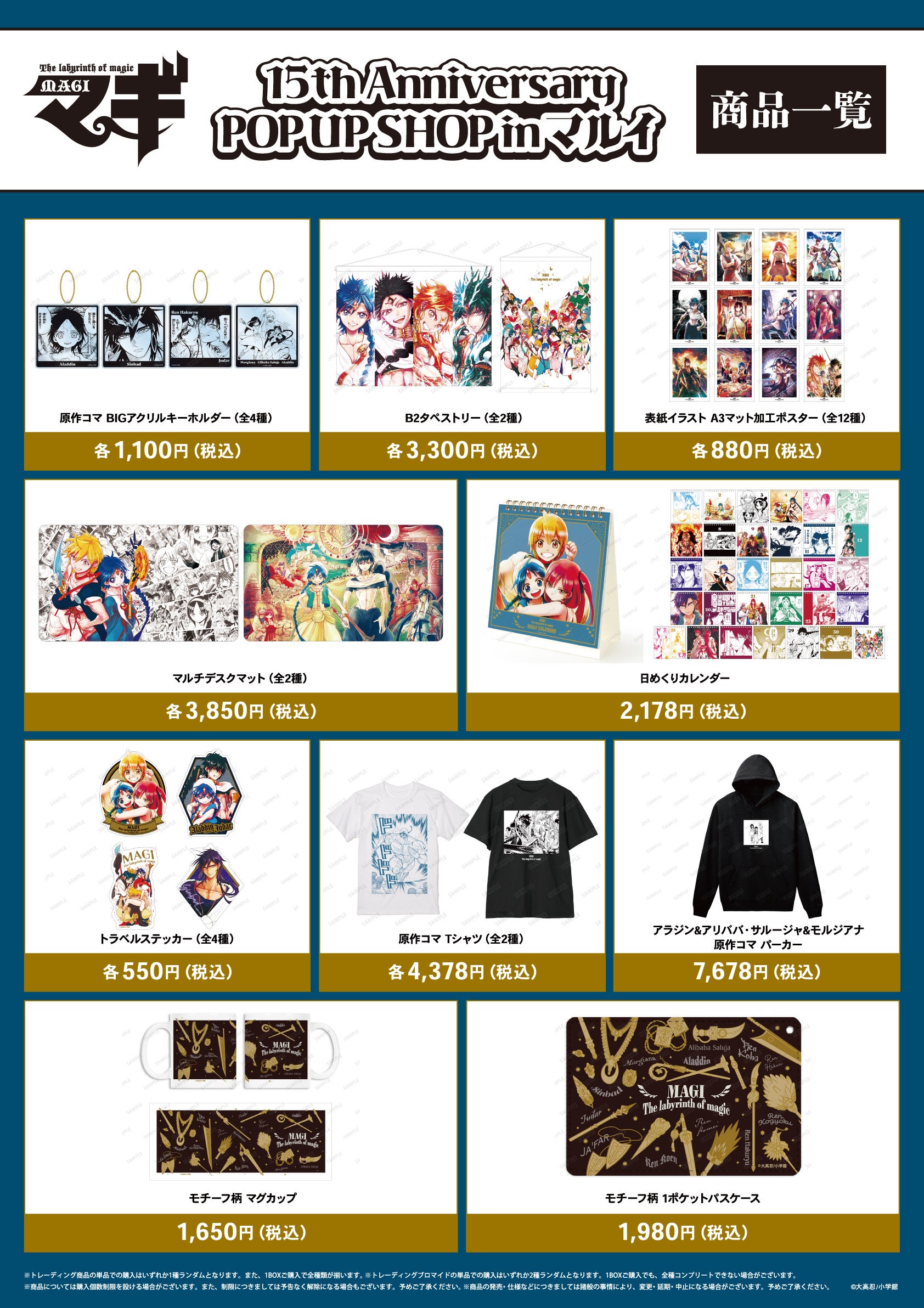 2024年8月17日(土)より新宿マルイ メンにて「『マギ』15th Anniversary POP UP SHOP in マルイ」の開催が決定いたしました。