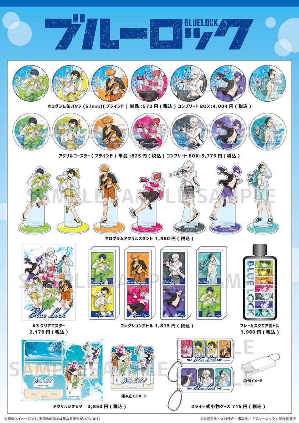 TVアニメ『ブルーロック』のキャラクターたちが、これからの季節にピッタリな水着姿で描かれたイラストを使用した今回の新作グッズ。