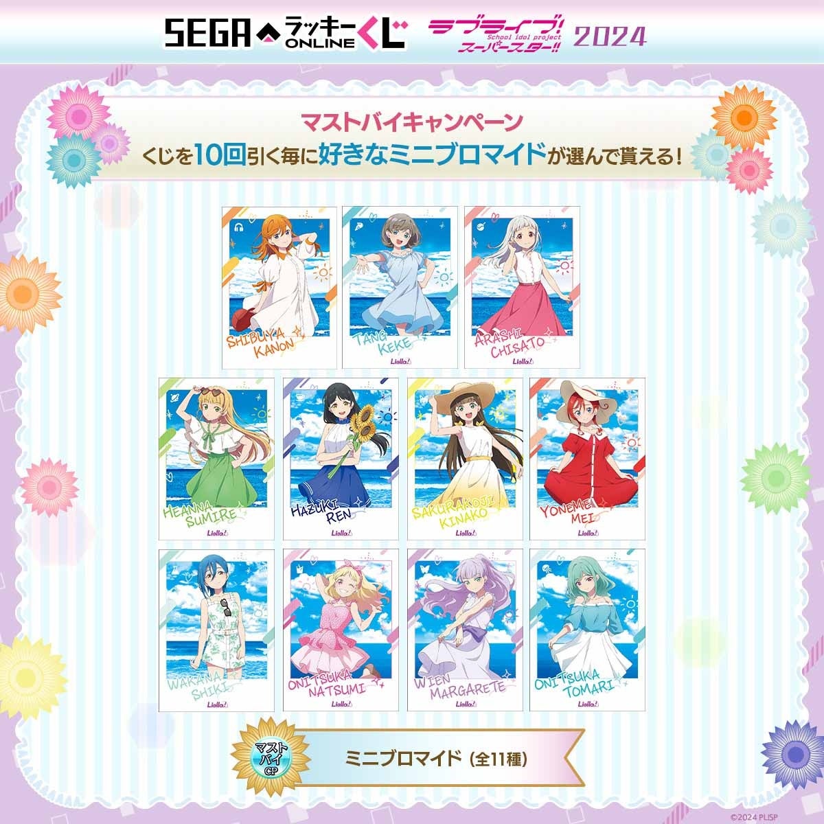 株式会社セガ フェイブは、セガ ラッキーくじオンライン「ラブライブ!スーパースター!! 2024」を2024年8月5日11時より販売開始いたします。