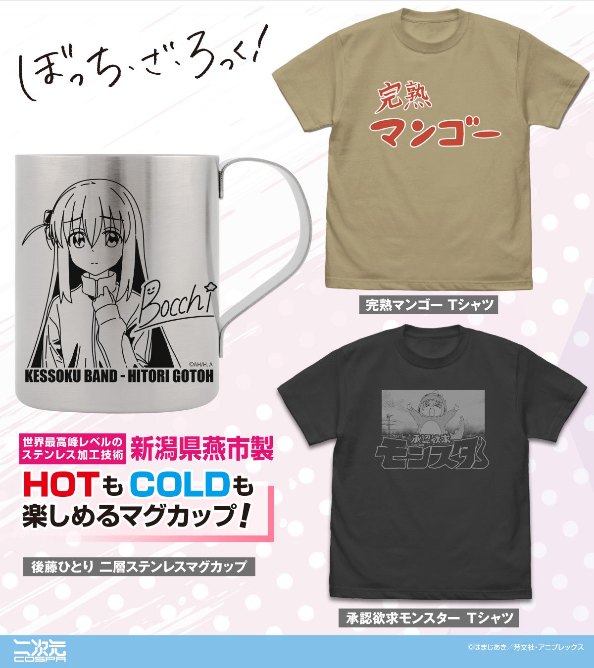 アニメ「ぼっち・ざ・ろっく!」より、「完熟マンゴー」「承認欲求モンスター」Tシャツに、「後藤ひとり」二層ステンレスマグカップが二次元コスパから登場。