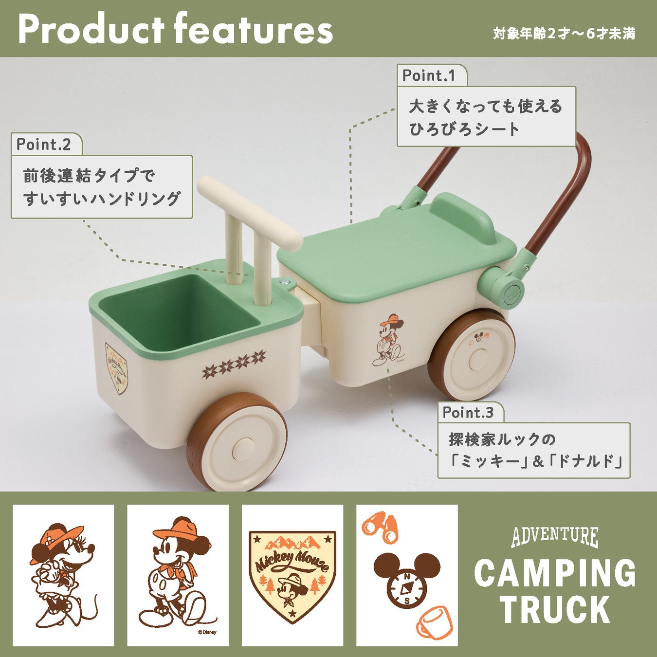 ディズニー アドベンチャーシリーズは、冒険家ルックの「ミッキー」「ミニー」「ドナルド」が描かれた、アドベンチャー&キャンプがテーマの室内玩具。
