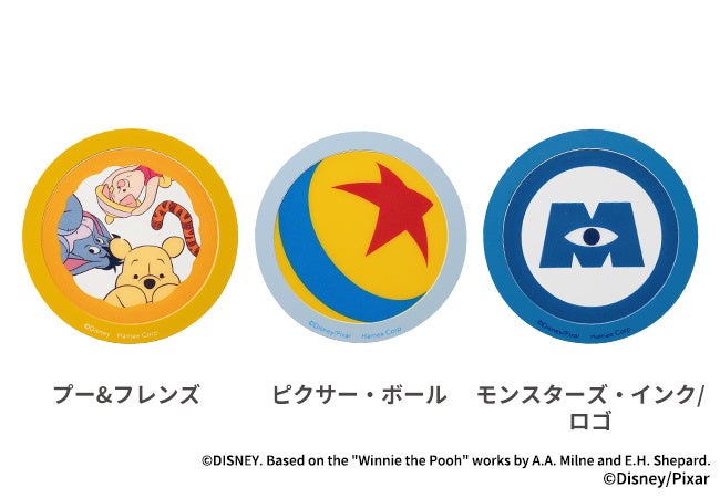 「ミッキーマウス/レコード」、「ドナルド/丸窓」、「チップ&デール」、「プー&フレンズ」、「ピクサー・ボール」、「モンスターズ・インク/ロゴ」の6デザインを展開します。