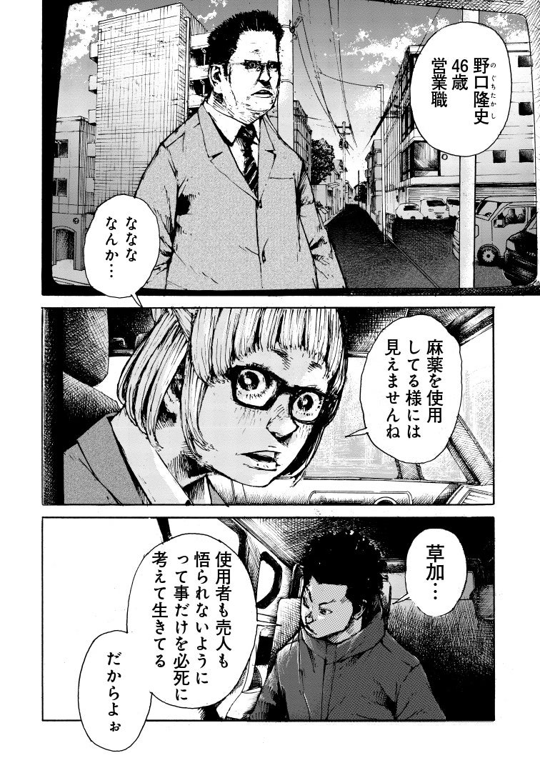 日々増加する麻薬犯罪を取り締まる厚生労働省麻薬取締官、通称・マトリの新人捜査官である草加は、夜となく昼となく奔走する業務に身と心をすり減らしていた。