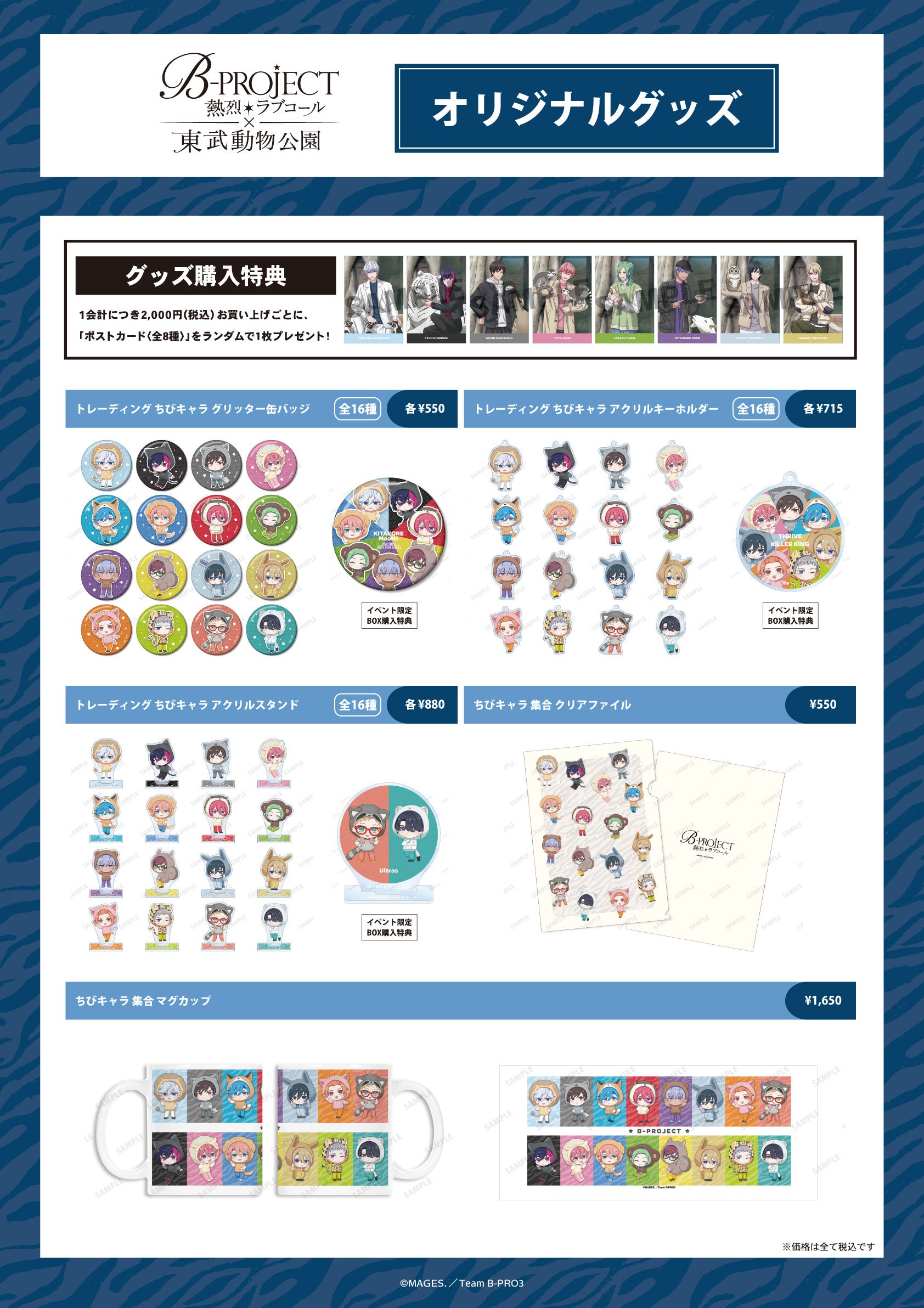 漫画・アニメのオリジナルグッズを販売する「AMNIBUS」を運営する株式会社アルマビアンカ(本社:東京都中野区、代表取締役:坂井智成)と東武動物公園(東武レジャー企画㈱ 埼玉県宮代町 社長:石附栄一)は、この度、2024年9月7日(土)~10月14日(月・祝)の期間、TVアニメ『B-PROJECT ~熱烈*ラブコール~』とのコラボイベント「B-PROJECT ~熱烈*ラブコール~×東武動物公園」を開催いたします。