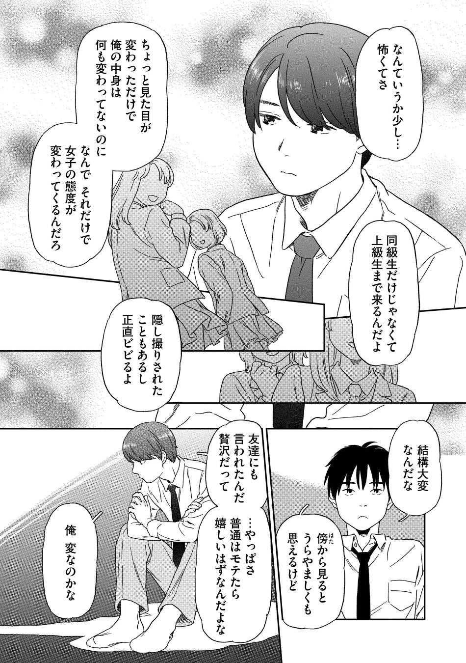 高校生3年生のしゅうと1年生のあまねは幼なじみ。高校生になって周囲から容姿をもてはやされるようになったあまねは、そのことをしゅうに相談する。しゅうはあまねの相談に乗りながら、言葉にできていなかった自分の気持ちに気づくが…?