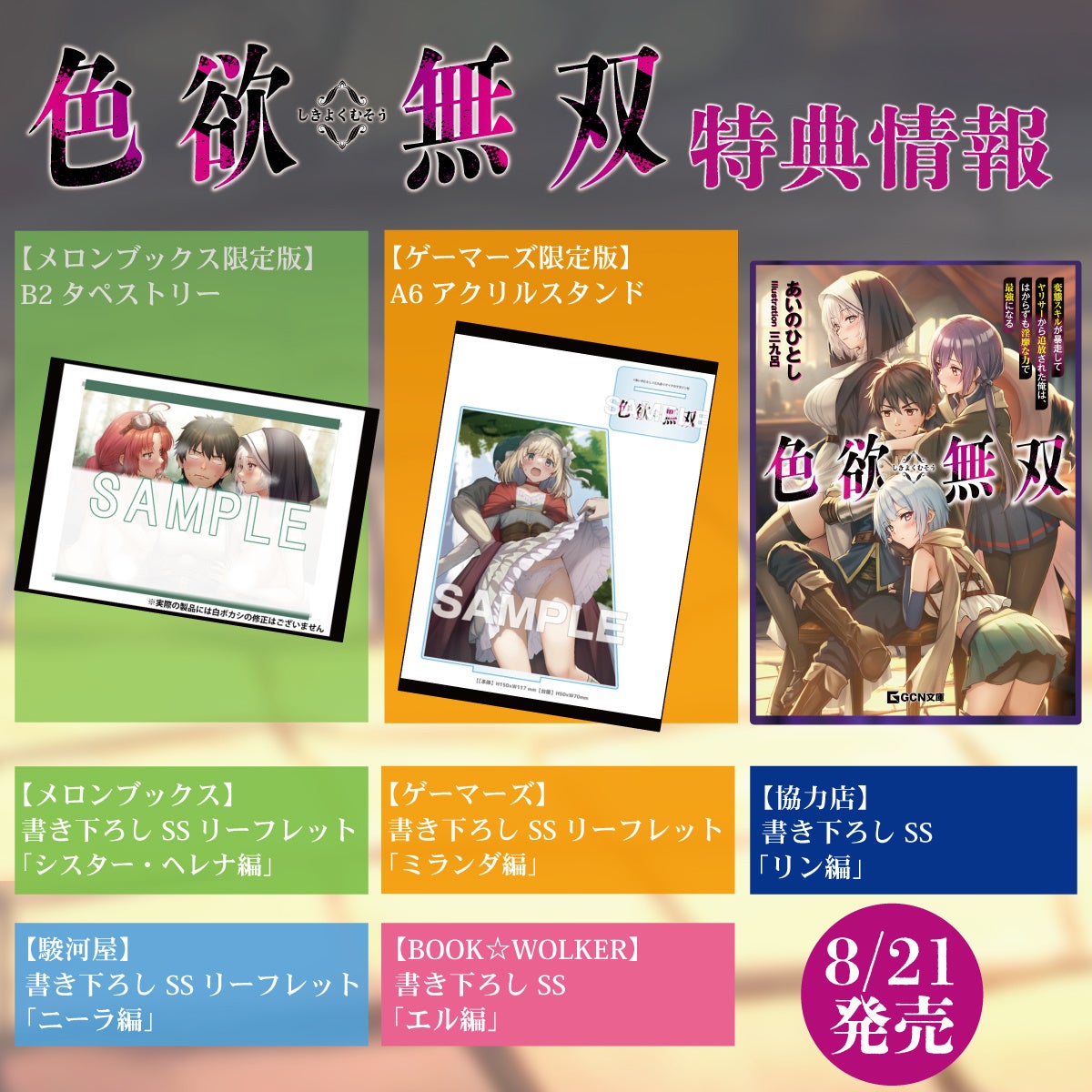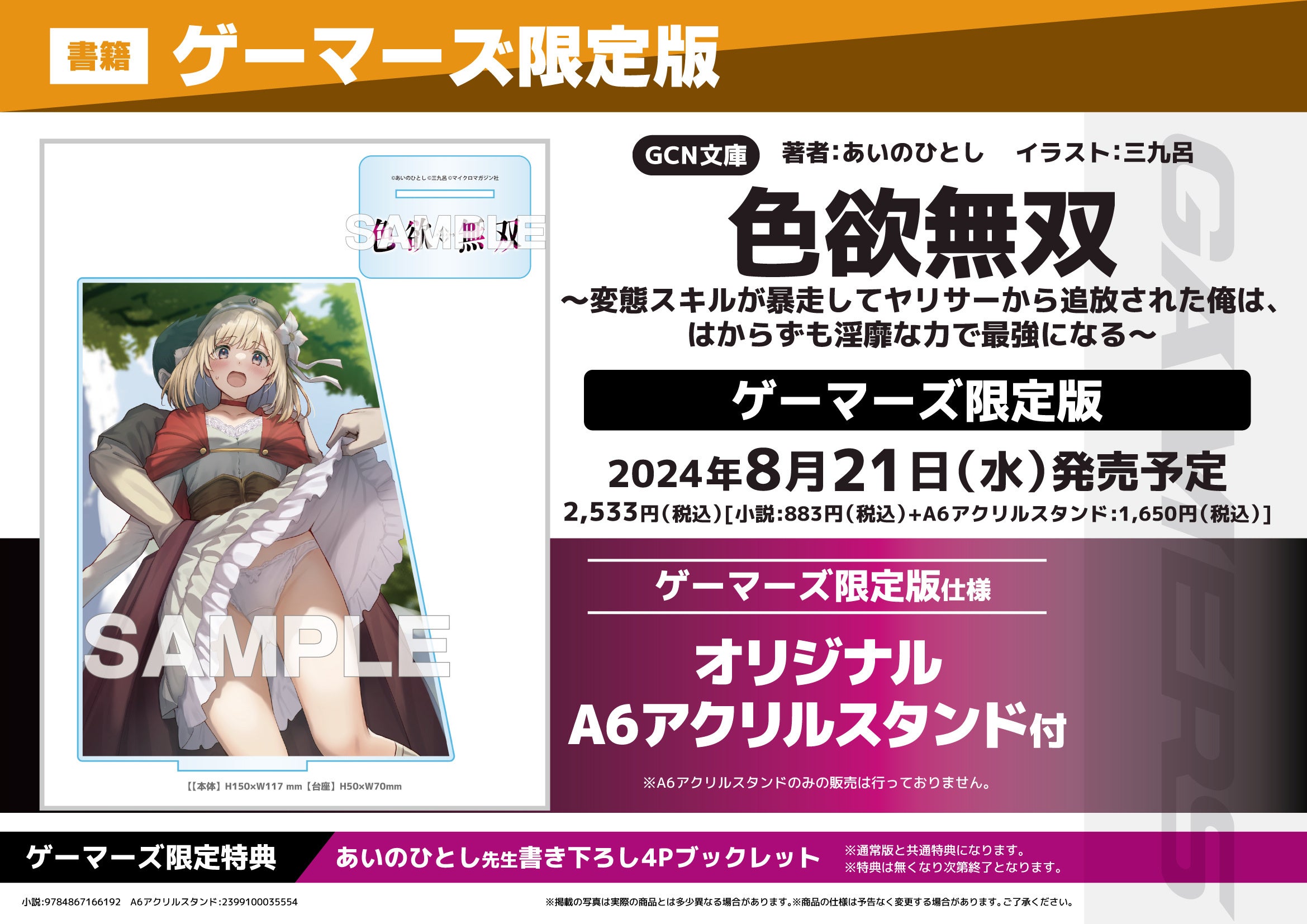 マイクロマガジン社(東京都中央区)は、GCN文庫『色欲無双~変態スキルが暴走してヤリサーから追放された俺は、はからずも淫靡な力で最強になる~』(著:あいのひとし/イラスト:三九呂)を8月21日に発売いたします。