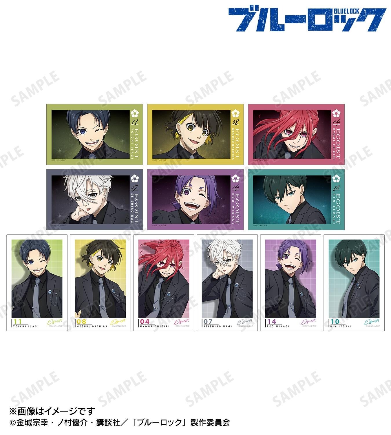 潔 世一、蜂楽 廻、千切 豹馬、凪 誠士郎、御影 玲王、糸師 凛の描き下ろしイラストをインスタントフィルム風のデザインに仕上げました。