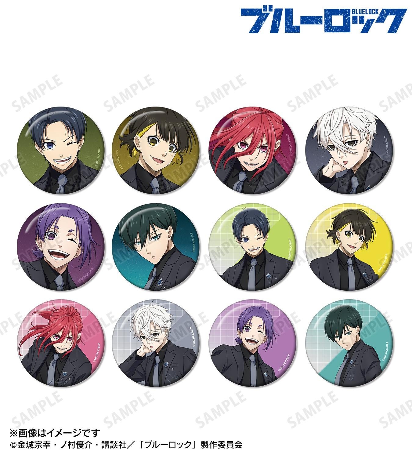 潔 世一、蜂楽 廻、千切 豹馬、凪 誠士郎、御影 玲王、糸師 凛の描き下ろしイラストを缶バッジに仕上げました。