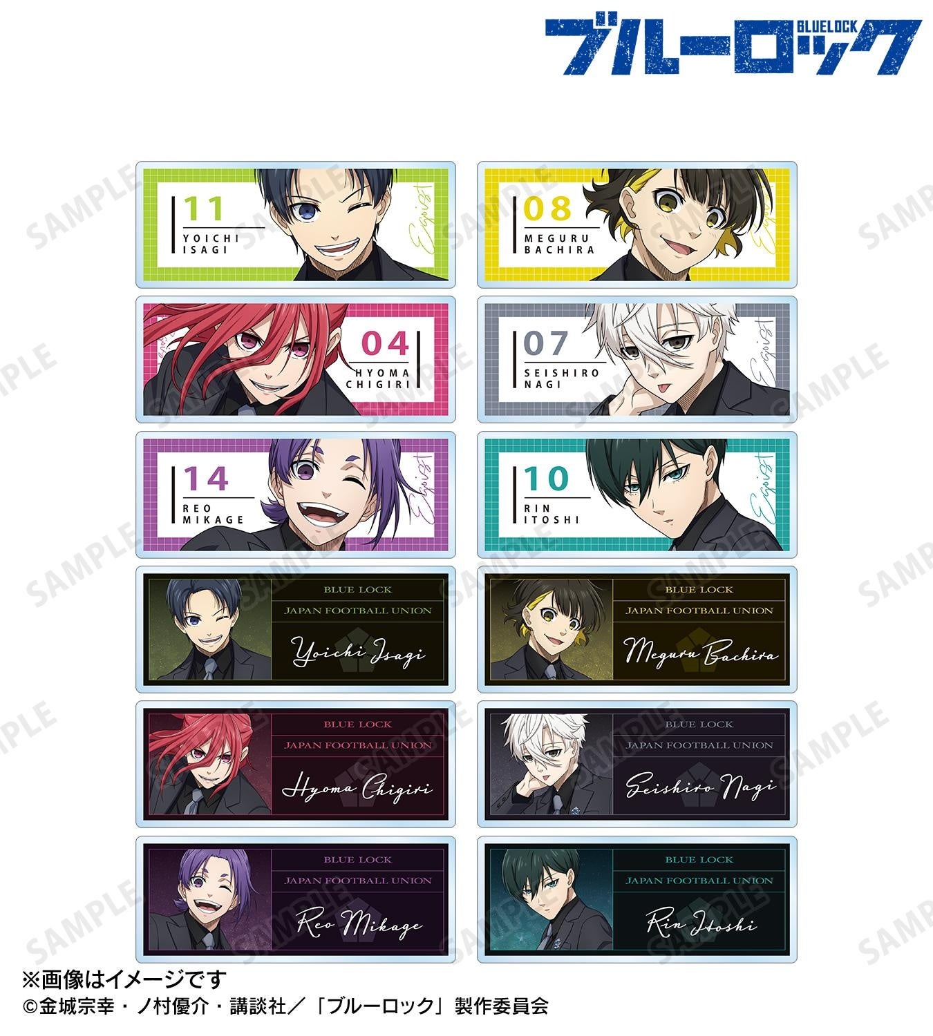 潔 世一、蜂楽 廻、千切 豹馬、凪 誠士郎、御影 玲王、糸師 凛の描き下ろしイラストをアクリルネームプレートに仕上げました。