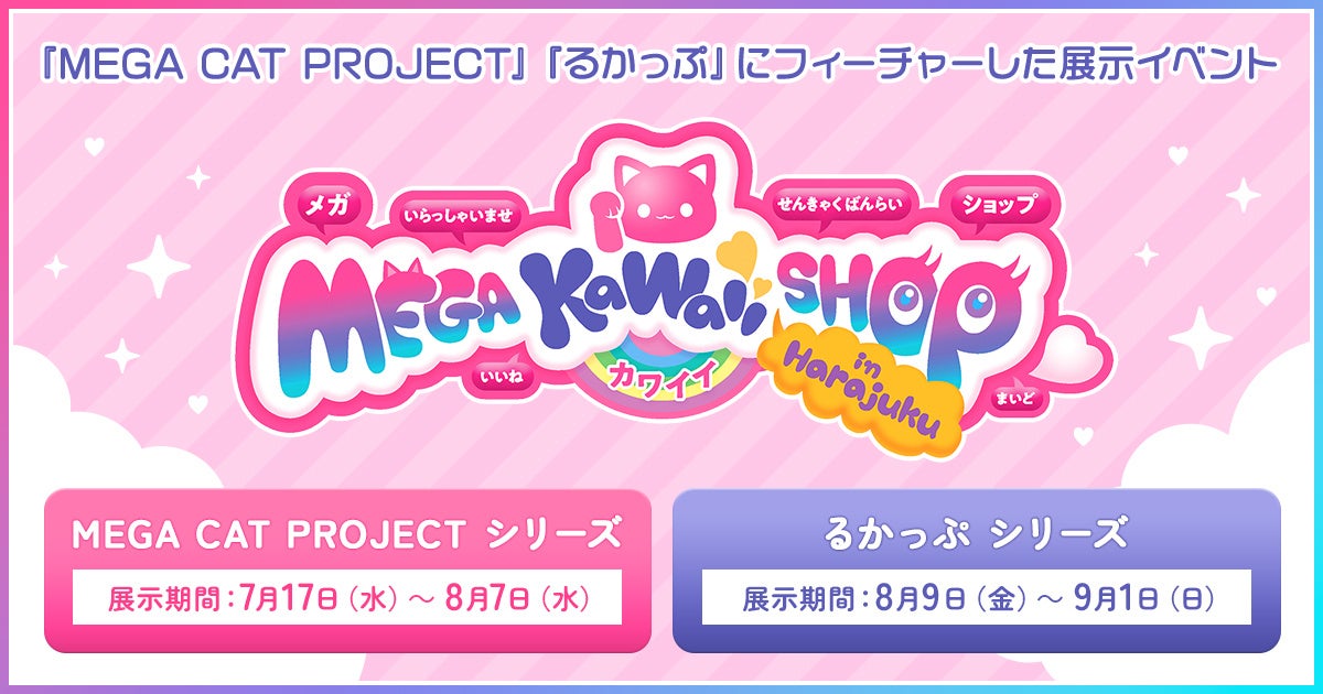 株式会社メガハウス(バンダイナムコグループ、本社:東京都台東区、代表取締役社長:佐藤 明宏)は、メガハウスが展開するフィギュアシリーズ『MEGA CAT PROJECT』と『るかっぷ』に特化した展示イベント「MEGA KAWAII SHOP in Harajuku」をSOOTANG HOBBY OMOTESANDO(渋谷区神宮前4-26-12カワノビル表参道2F)にて、9月1日(日)まで開催いたします。