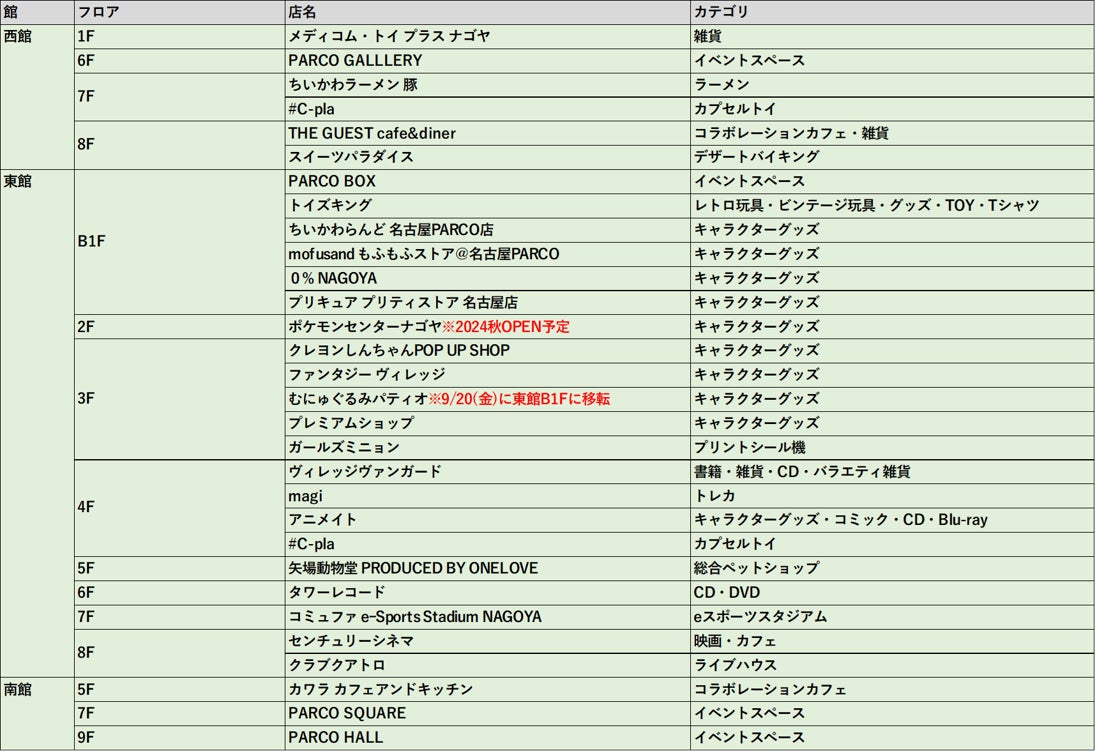 名古屋PARCOはこの秋、ポケモンセンターナゴヤを迎え、東館2階全面大規模リニューアルを実施。館内のキャラクターショップがさらに充実しました。そこで、館内の全30拠点、約7,940㎡に及ぶ、既存のキャラクターショップ から 、期間限定のポップアップショップ や展覧会、さらに映画館やライブハウス、コラボカフェの情報を、一つのWEBサイトに集約し、お客様に最新のエンタテインメント情報をわかりやすく発信して参ります。