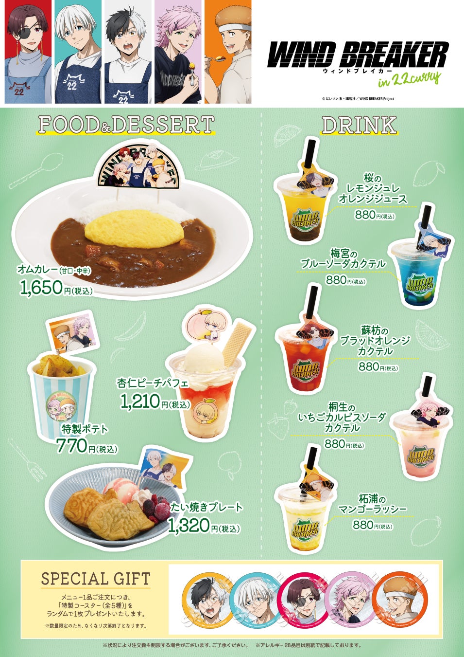 株式会社マズル(本社:東京都千代⽥区 代表取締役:近内 裕基)は、9月3⽇(火)よりTVアニメ『WIND BREAKER』POP UP STORE in 22カレーを開催いたします。