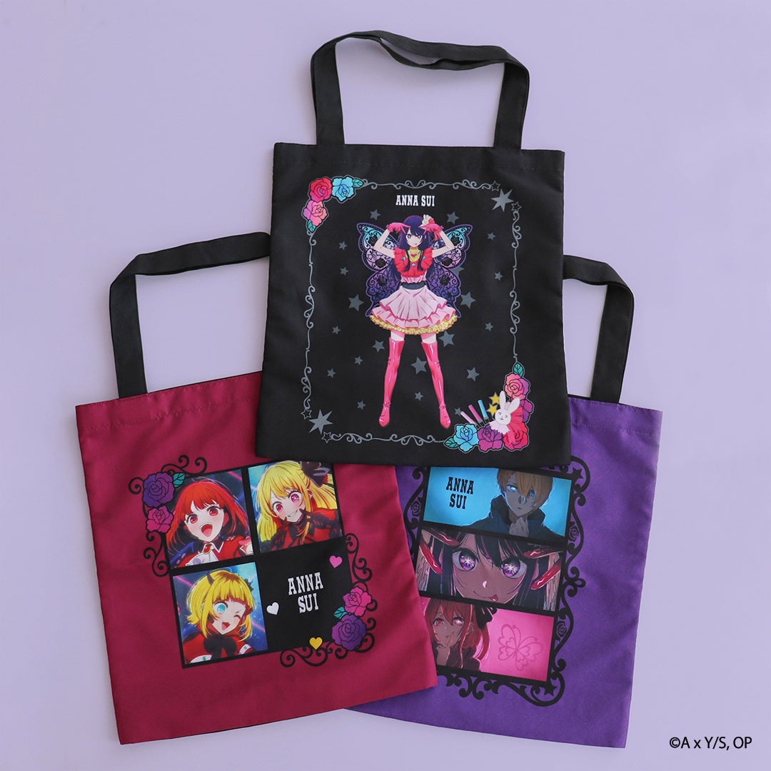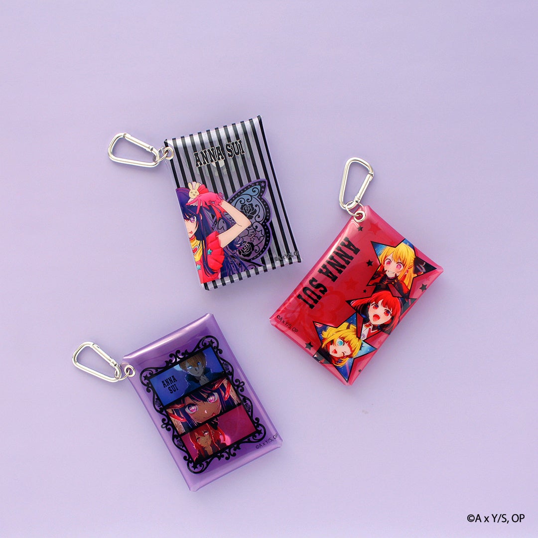 ANNA SUIらしいバタフライとキャラクターを組み合わせた特別なシリーズです。ANNA SUIブティックの店内とB小町の3人を組み合わせたイメージのデザインなど、【推しの子】の要素が散りばめられたファン必見のデザインです。