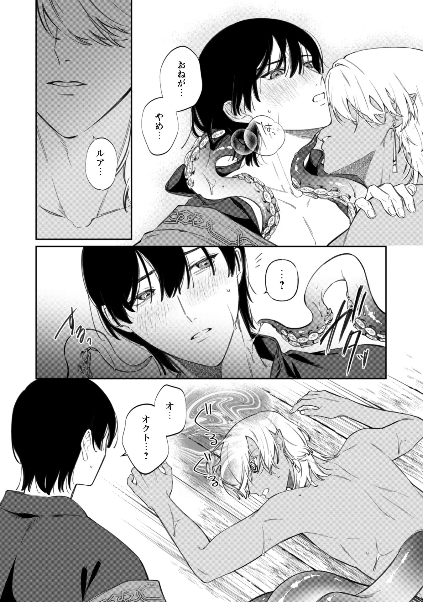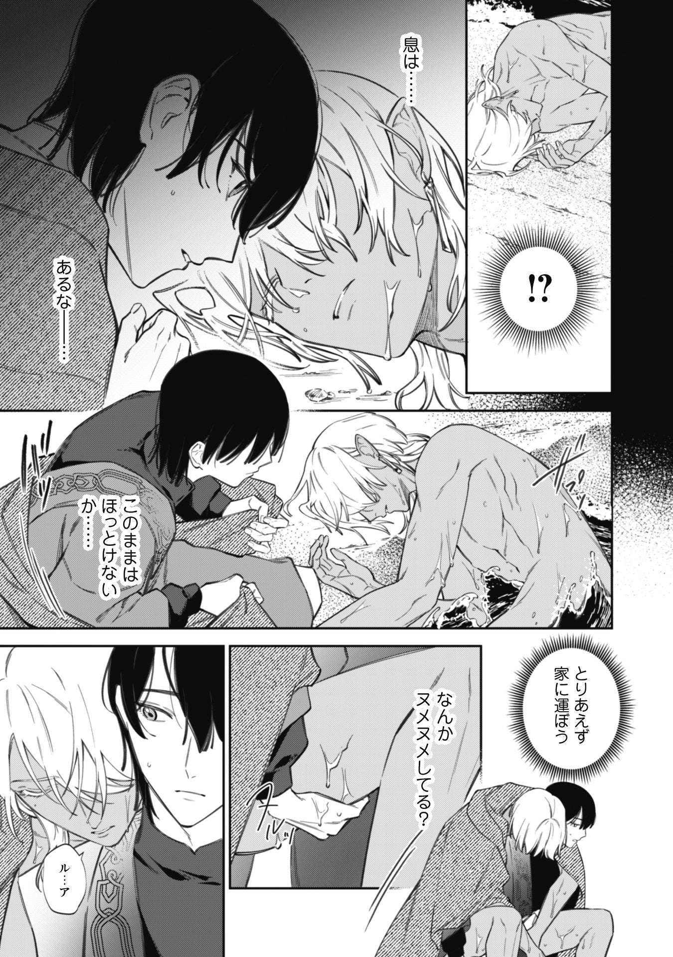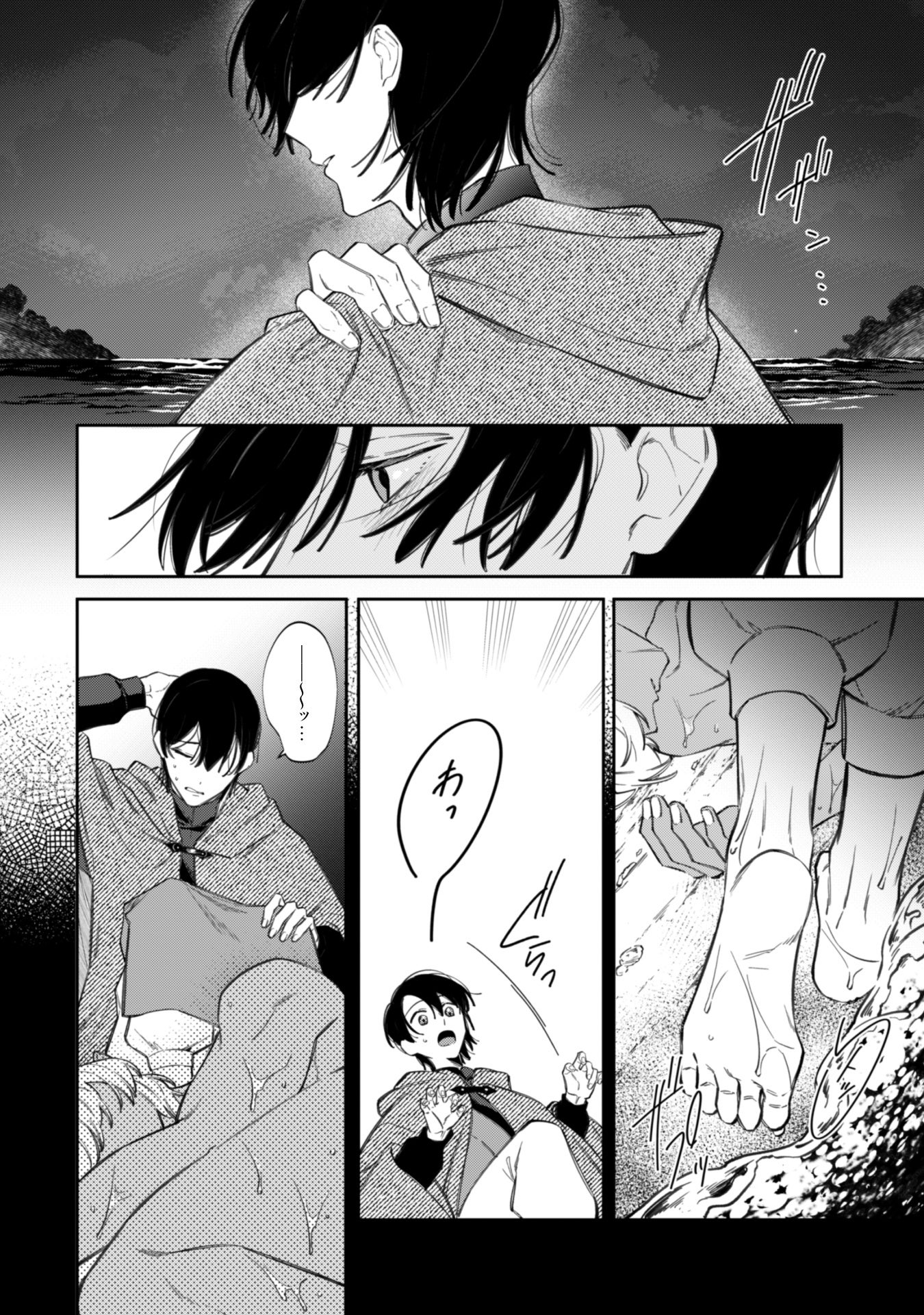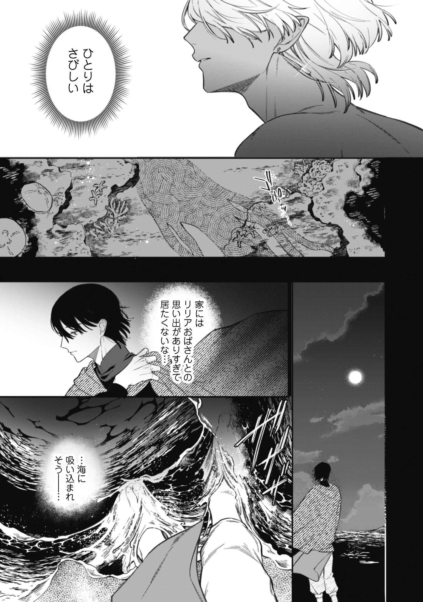岸辺に横たわる青年・オクトを助ける。