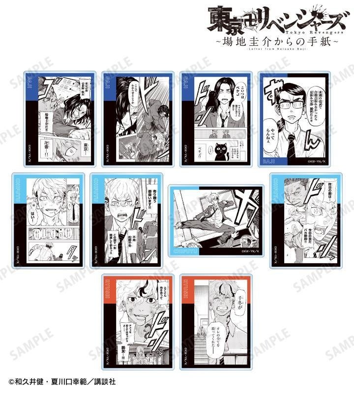場地 圭介、松野 千冬、佐藤 龍星の原作コマをアクリルカードに仕上げました。