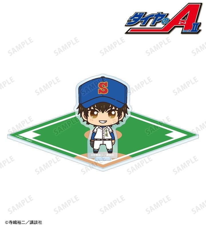 沢村栄純、御幸一也、降谷暁、倉持洋一、小湊春市、奥村光舟がちょこんと立っているちびキャラを新たに描き起こし、アクリルスタンドに仕上げました。