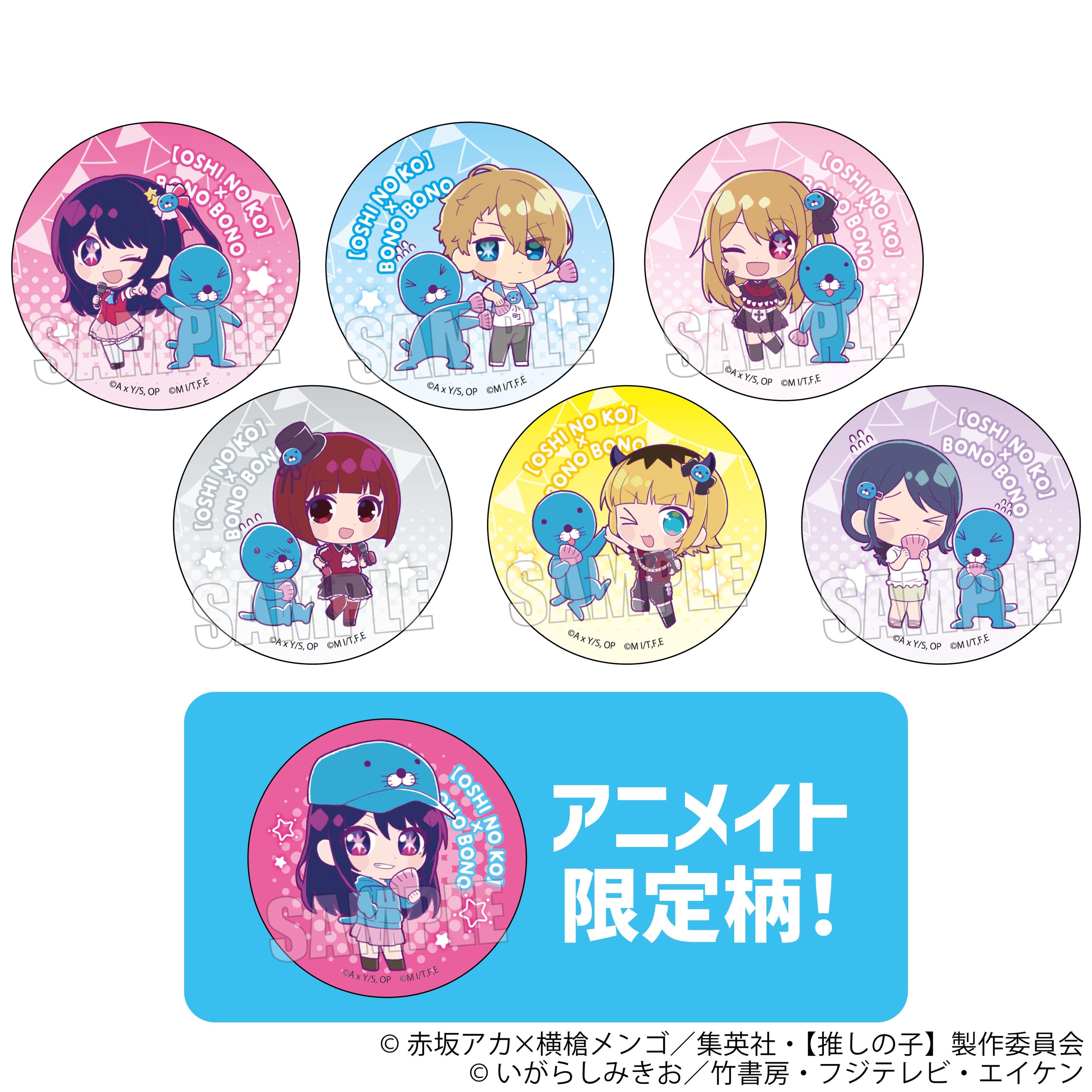 アイをはじめ、アクア、ルビー、有馬かな、黒川あかね、MEMちょ達【推しの子】キャラクターと、ぼのぼのが楽しく過ごすかわいい姿がグッズになりました。