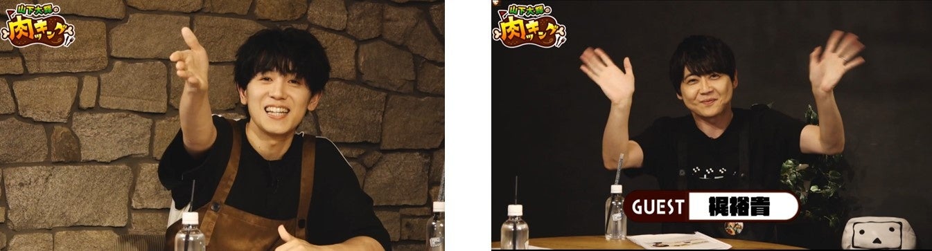 「山下大輝の肉ッキング」は、お肉大好き声優の山下大輝が料理好きのお友達声優をゲストに招き、そのゲストに番組オリジナルレシピの肉料理を丹精込めて作ってもらい、それを山下が全力で美味しくいただく、という肉好き声優・山下大輝のご褒美番組。ニコニコのサービス再開後、約5か月ぶりの放送となる今回、TVアニメ『僕のヒーローアカデミア』で共演している人気声優・梶裕貴をゲストに迎えてお送りしました。