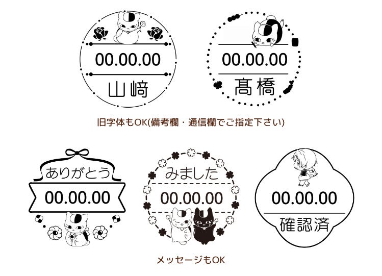 たくさんのファンに愛されている「夏目友人帳」のニャンコ先生をはじめとしたかわいいキャラクターたちが、アナログな日付印を引き立ててくれます。