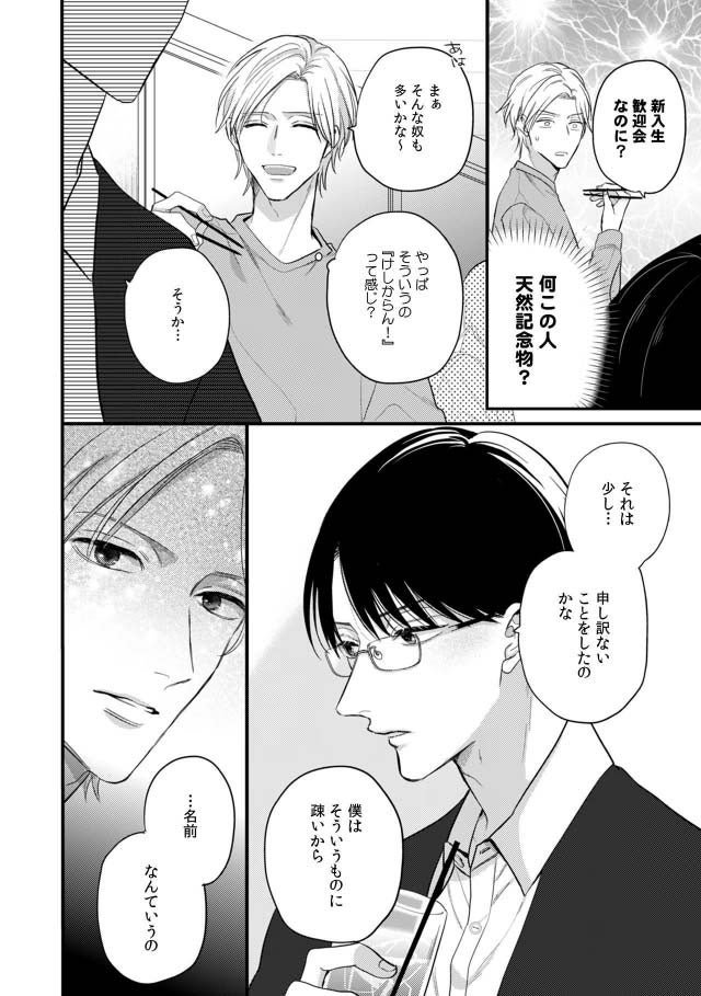 神宮寺 頼(じんぐうじ より)は、大学の新歓コンパで出会った真面目な野崎 怜(のざき れい)の、不意打ちの笑顔に一目惚れ。大学で見かけるたび、寮で遭遇するたびに想いは募り、いつか触れてみたいと夢にまで見るようになる。