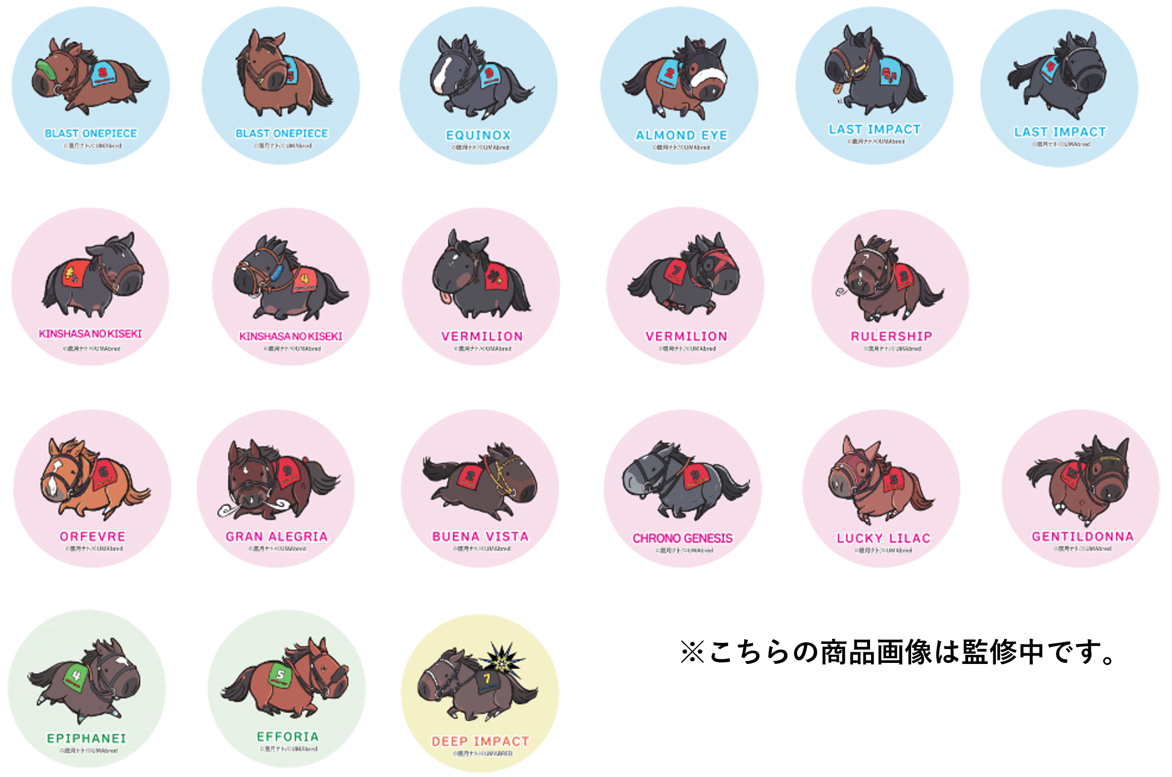 UMAbredPOPUPのために新規で書き下ろされた全16頭が缶バッチになりました。