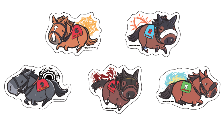 キービジュアル起用の5頭がそれぞれダイカットのステッカーになりました。
