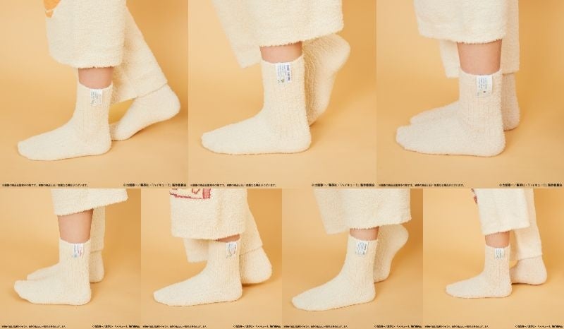 もこもこ素材で履き心地抜群。キャラクターのプロフィールが書かれたデザインネームもポイントです。