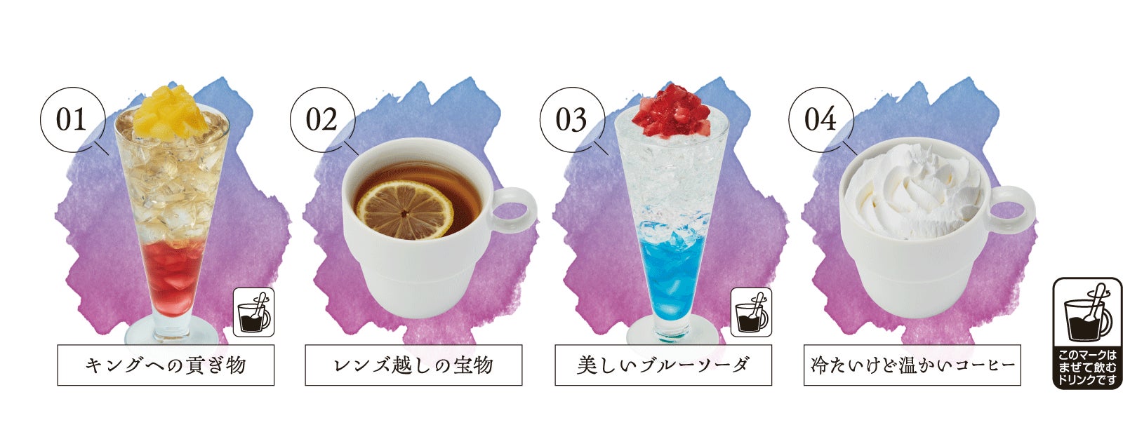 コラボドリンクは、「美しい彼」の世界観、キャラクターをイメージした全4種をご用意します。
