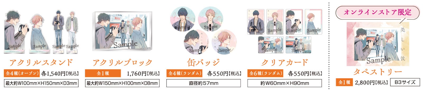 さらに、描き下ろしイラストを使用したコラボキャンペーン限定のオリジナルグッズ、「アクリルスタンド【全4種/オープン】」「アクリルブロック【全1種】」「缶バッジ【全4種/ランダム】」「クリアカード【全6種/ランダム】」「タペストリー【全1種】」を、JOYSOUND直営店10店舗の店頭及び、オンラインストア(完全予約制)で販売いたします!