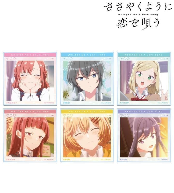 木野ひまり、朝凪依、水口亜季、筒井真理、橘香織、泉志帆の印象的なシーンをSNS風のアクリルカードに仕上げました。