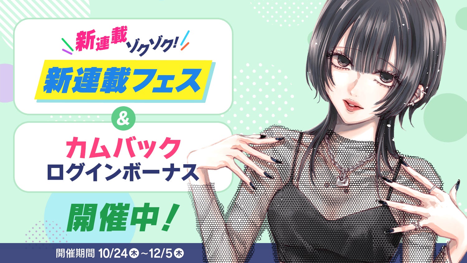 株式会社Cygames(本社:東京都渋谷区、代表取締役社長:渡邊耕一)は、マンガ配信サービス「サイコミ」において、2024年10月24日(木)~2024年12月5日(木)に『新連載フェス』を開催します。新連載8作品が続々スタートし、1話を読むと30コインをプレゼント、最大240ボーナスコインがもらえます。