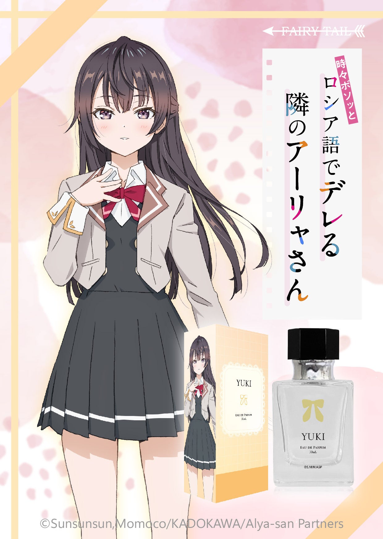フレッシュでみずみずしいフローラルノートから始まるトップノートは、淑女の鑑とも称される有希の品行方正さを感じます。ジャスミンやローズが加わり、可憐でありながら深みを帯びた香りに変化していくミドルノートは、兄に好意を持つアーリャに幼馴染みマウントを取ったり、政近に行き過ぎた兄妹愛とスキンシップを迫ってからかう、外向けに作ったお嬢様キャラからは想像できない小悪魔な一面が垣間見えます。パチョリが香りにきらめきを与え、心地よくもクールなフローラルノートが持続するラストノートは、有希の政近への尊敬や憧れ、そして深い愛情を感じます。