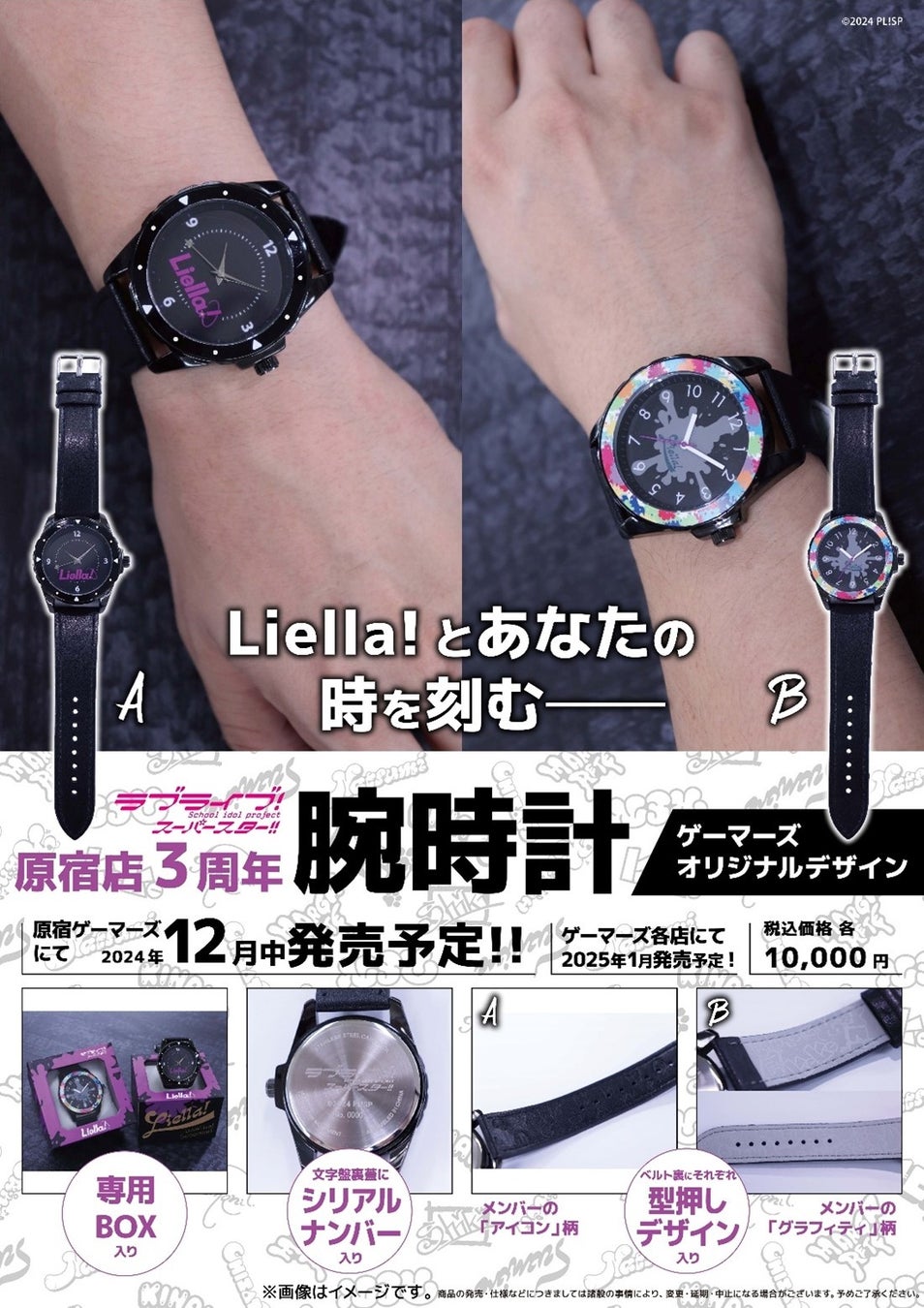 株式会社カードラボ ゲーマーズ(本社:東京都板橋区、https://www.gamers.co.jp/以下ゲーマーズ )は、「ラブライブ!スーパースター!!」オフィシャルタイアップショップ原宿ゲーマーズのオープン3周年を記念して「Liella!」をイメージした腕時計をゲーマーズ全店(オンラインショップ含む)にて限定発売することをお知らせいたします。