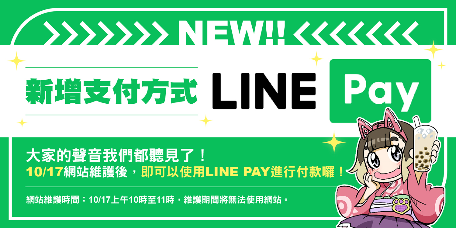 →決済手段として、台湾スマホ決済市場シェアNo.1の「LINEPay決済」を新たに実装。さらに便利にお買い物いただけるようになりました。