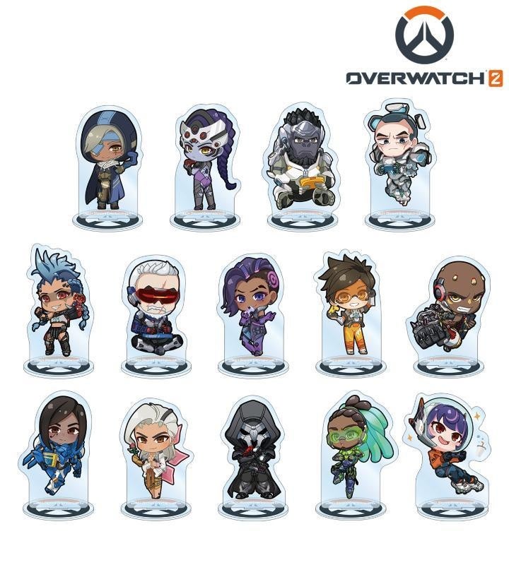 アナ、ウィドウメイカー、ウィンストン、シグマ、ジャンカー・クイーン、ソルジャー76、ソンブラ、トレーサー、ドゥームフィスト、ファラ、ライフウィーバー、リーパー、ルシオ、ジュノのちびキャライラストをアクリルスタンドに仕上げました。