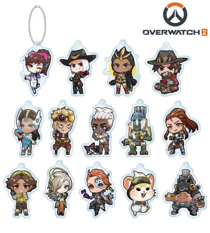 アナ、ウィドウメイカー、ウィンストン、シグマ、ジャンカー・クイーン、ソルジャー76、ソンブラ、トレーサー、ドゥームフィスト、ファラ、ライフウィーバー、リーパー、ルシオ、ジュノのちびキャライラストをアクリルキーホルダーに仕上げました。