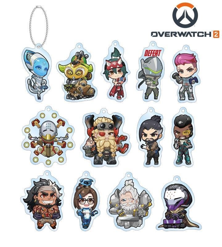 エコー、オリーサ、キリコ、ゲンジ、ザリア、ゼニヤッタ、トールビョーン、ハンゾー、バティスト、マウガ、メイ、ラインハルト、ラマットラのちびキャライラストをアクリルキーホルダーに仕上げました。