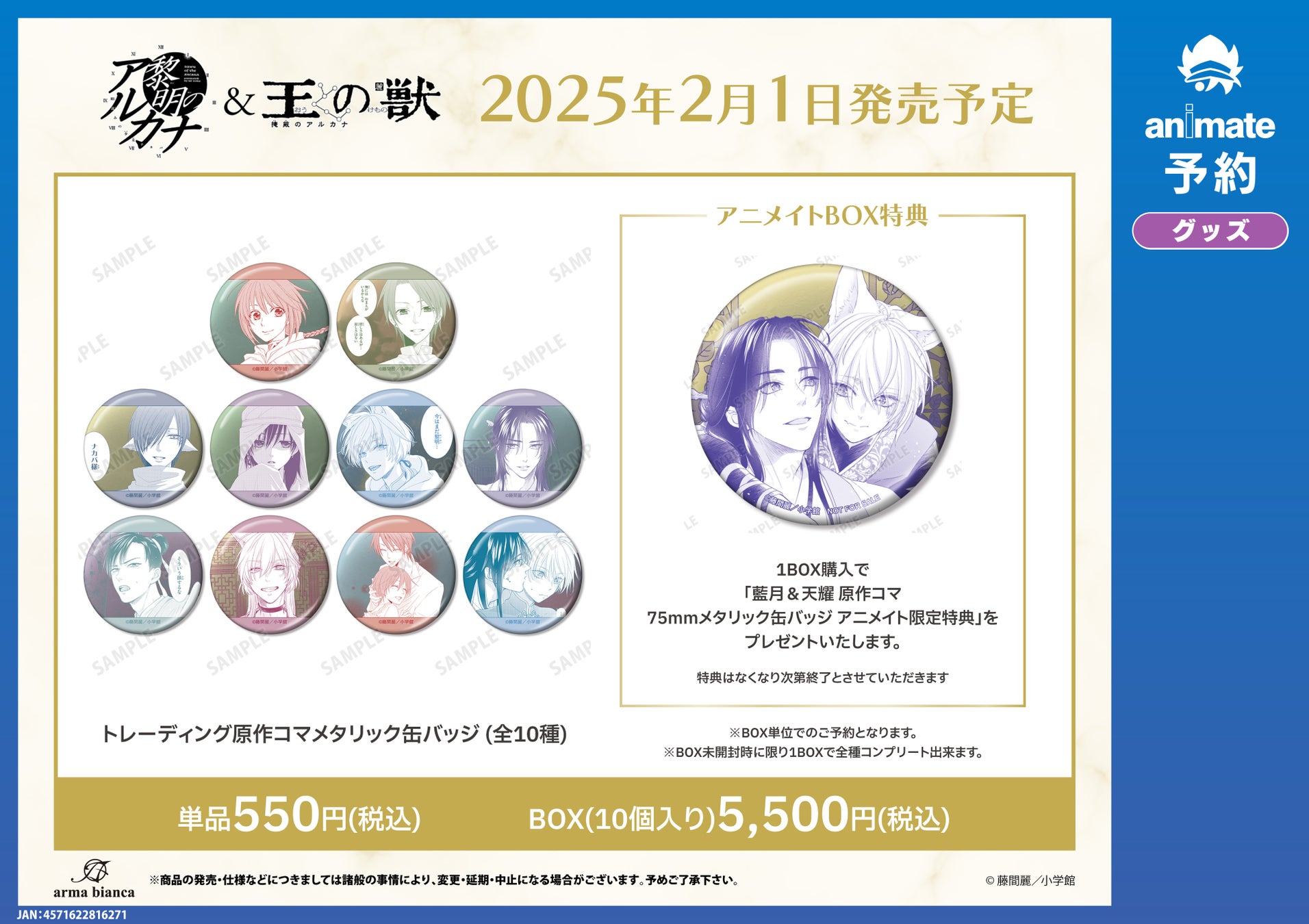 1BOX購入で「藍月&天耀 原作コマ75mmメタリック缶バッジ アニメイト限定特典」をプレゼントいたします。