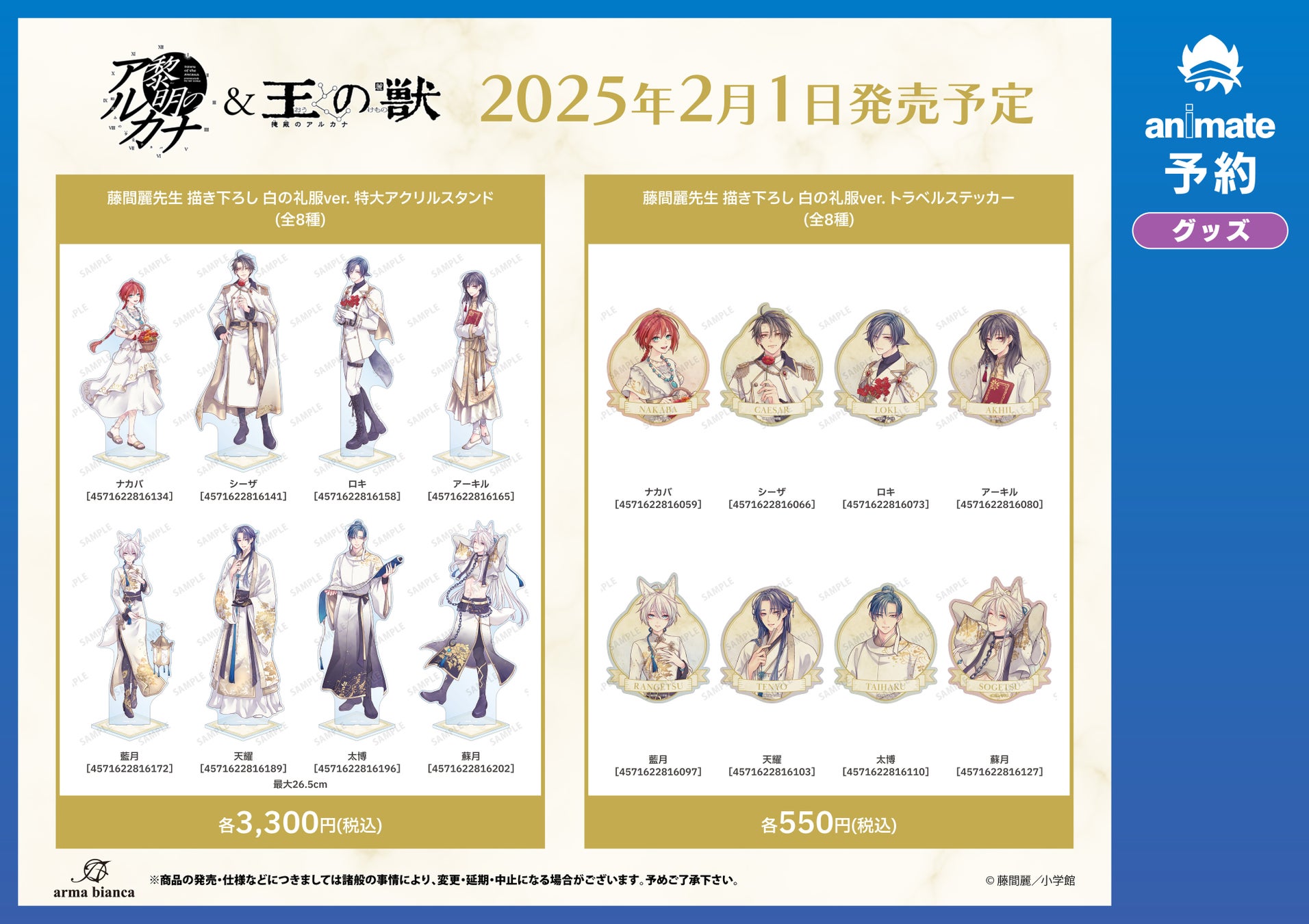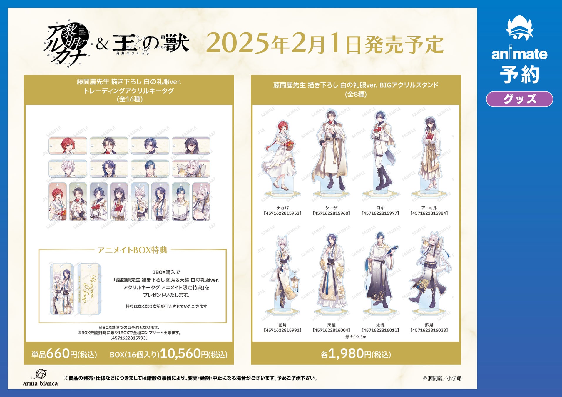 ※2月1日(土)より予約開始予定のECサイト「AMNIBUS」では、BOX購入特典として「藤間麗先生 描き下ろし ナカバ&シーザ 白の礼服ver. アクリルキータグ AMNIBUS限定特典」を予定しております。