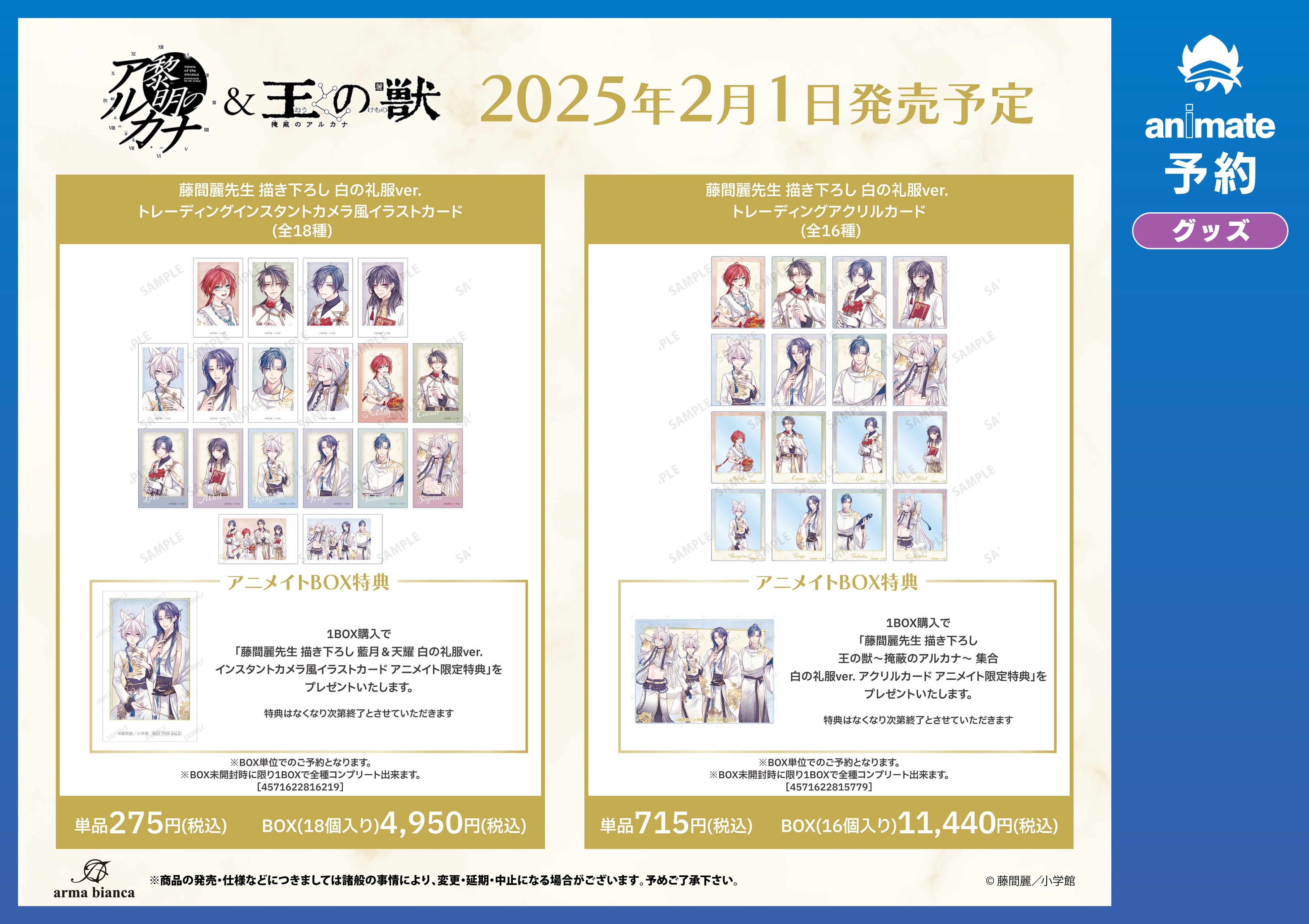 ※2月1日(土)より予約開始予定のECサイト「AMNIBUS」では、BOX購入特典として「藤間麗先生 描き下ろし ナカバ&シーザ 白の礼服ver. インスタントカメラ風イラストカード AMNIBUS限定特典」を予定しております。