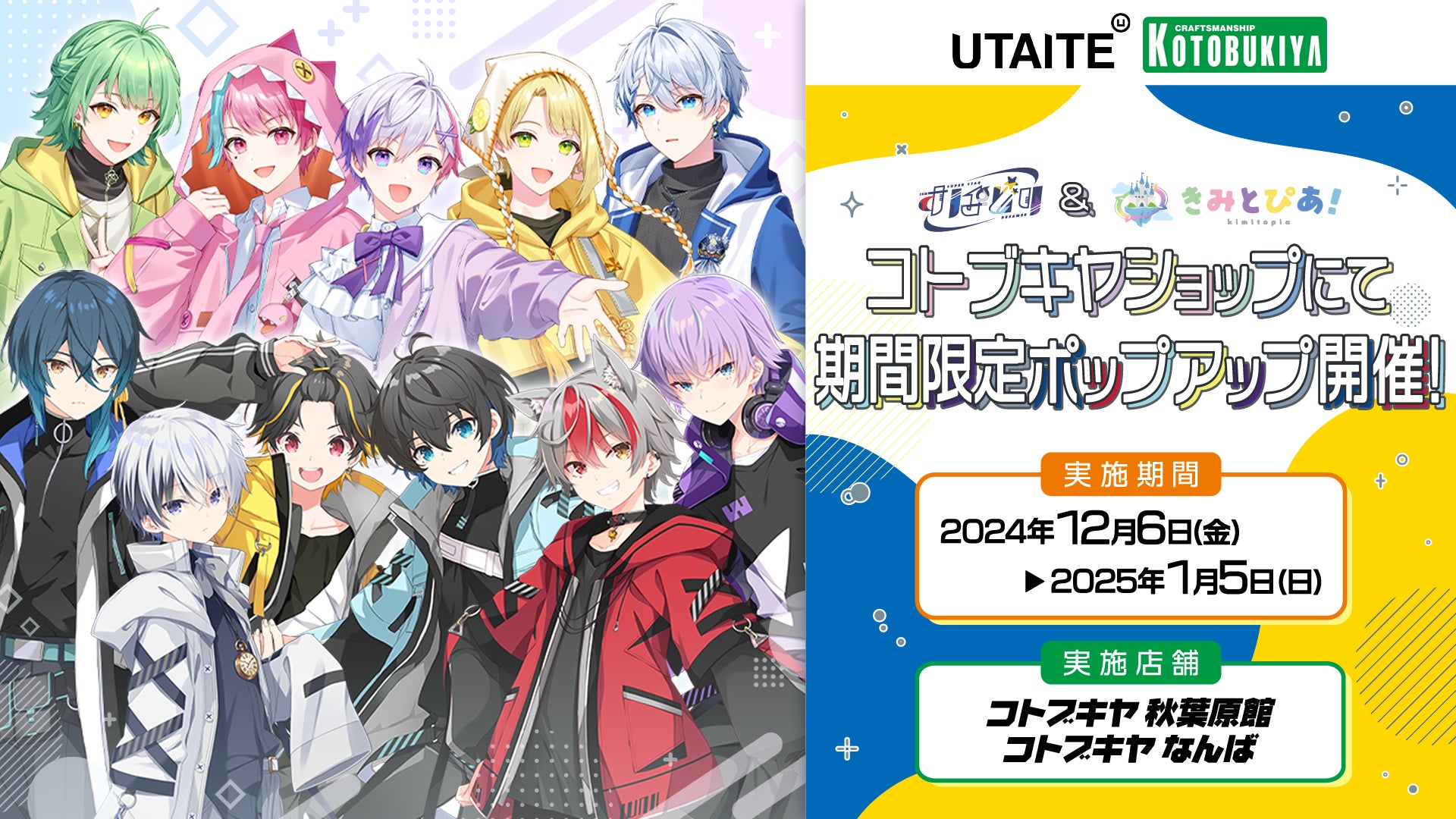 2.5次元IP開発、運営を行う株式会社ウタイテ(本社:東京都新宿区、代表取締役:倉田将志)は、UTAITE所属歌い手ユニット『すぱどり』及び『きみとぴあ!』が2024年12月6日(金)〜1月5日(日)でコトブキヤショップにて期間限定ポップアップを開催することをお知らせいたします。