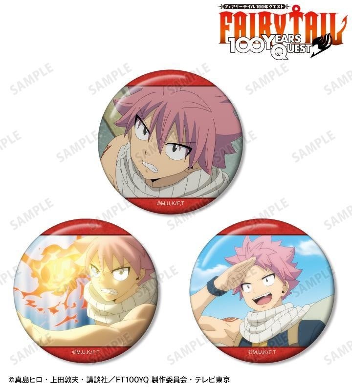 ナツ・ドラグニル、ルーシィ・ハートフィリア、ハッピー、グレイ・フルバスター、エルザ・スカーレット、ウェンディ・マーベルの印象的なシーンを缶バッジに仕上げました。