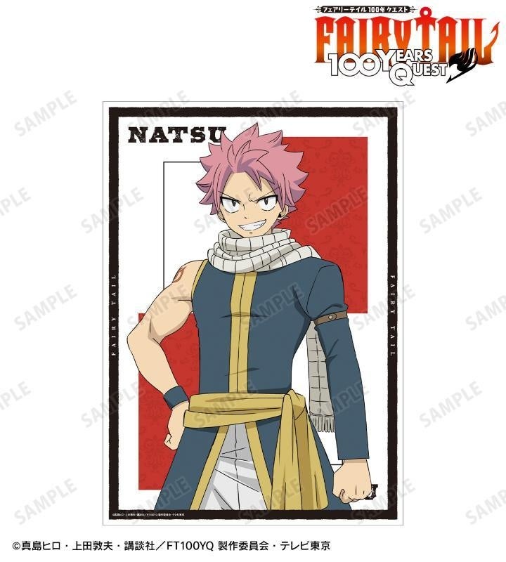 ナツ・ドラグニル、ルーシィ・ハートフィリア、ハッピー、グレイ・フルバスター、エルザ・スカーレット、ウェンディ・マーベル、シャルル、トウカのイラストをA3サイズのマット加工されたポスターに仕上げました。