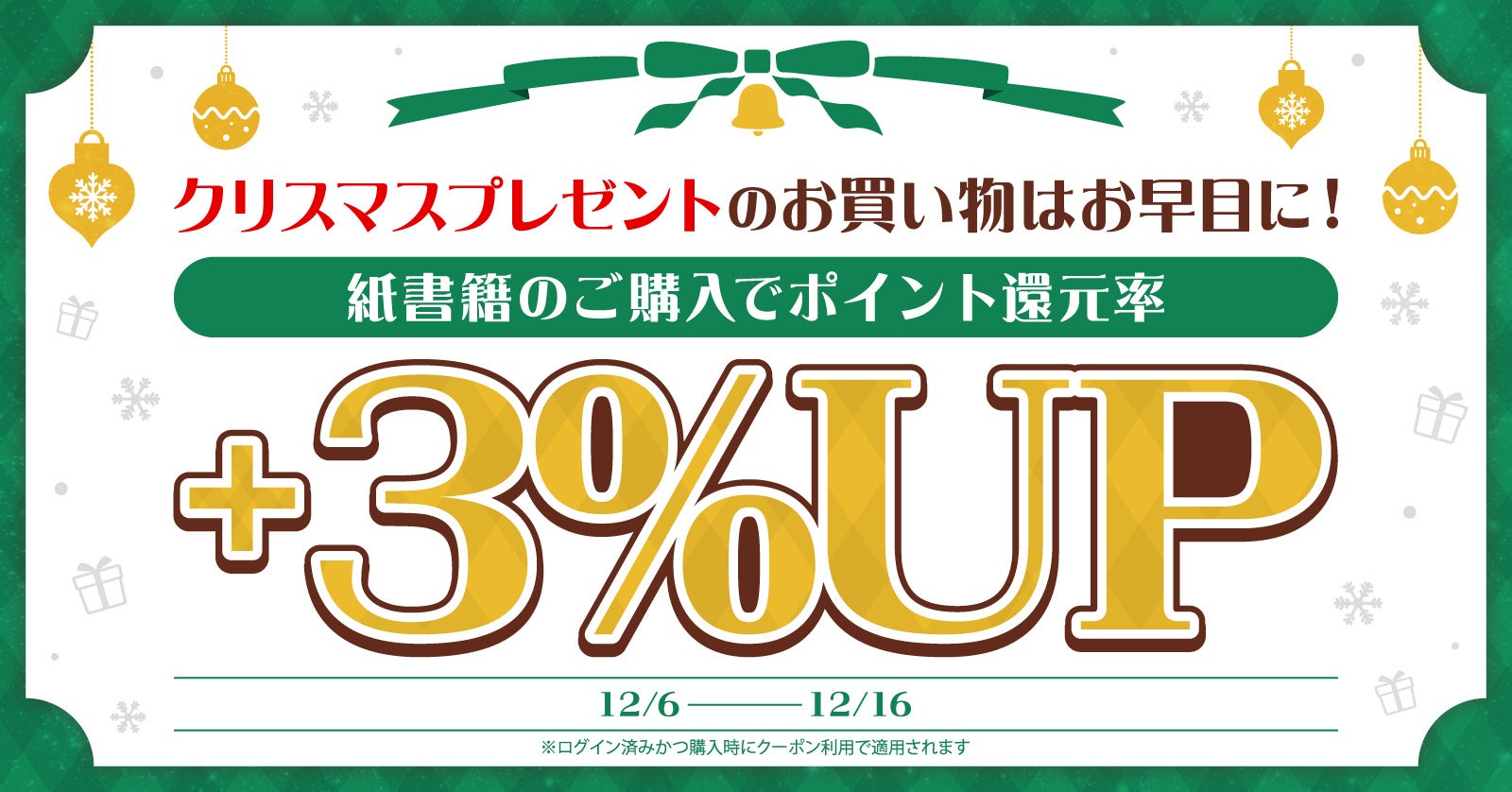 本日から紙書籍+3%UPクーポンを配布いたします!!
