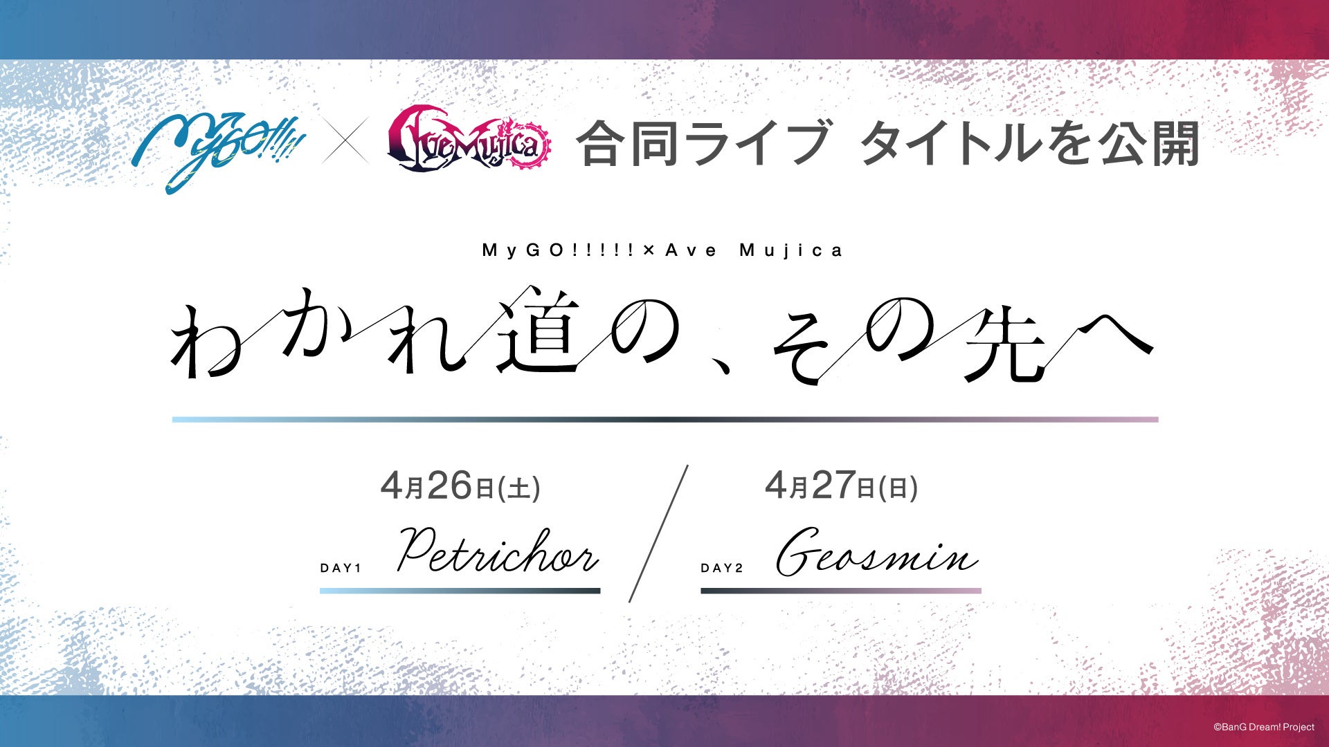 2025年4月26日(土)・27日(日)に、Kアリーナ横浜にて開催されるMyGO!!!!!×Ave Mujica 合同ライブのタイトルとロゴを公開しました。